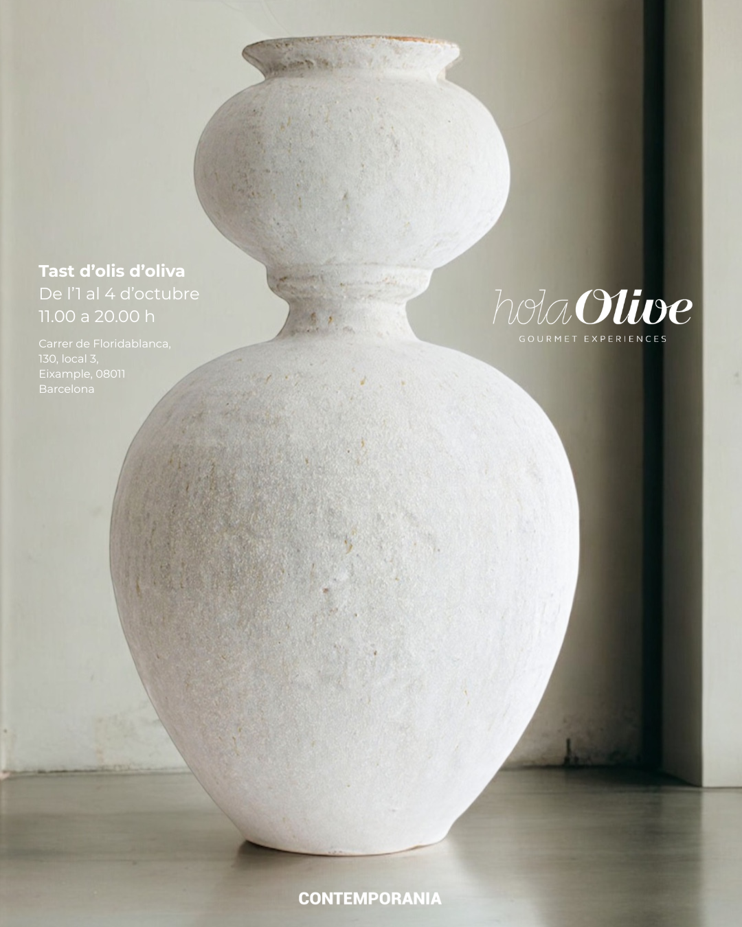 En el marc de l’OFF-C de Contemporània, la col·laboració entre HolaOlive i la ceràmica inspirada en el Fons Marí uneix dos oficis que comparteixen la mateixa essència: la creació artesanal i la recerca de l’excel·lència. Els mestres de l’oli d’oliva Premium transformen el fruit en or líquid, mentre els artesans de la ceràmica modelen el fang en peces úniques. Junts tracen un diàleg entre sabor i matèria, tradició i contemporaneïtat, natura i art.